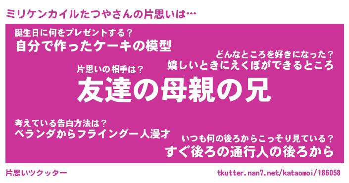 | ヘコむあだ名 | 『ミリにー』『なまこ酢』『ミリ太郎』 |