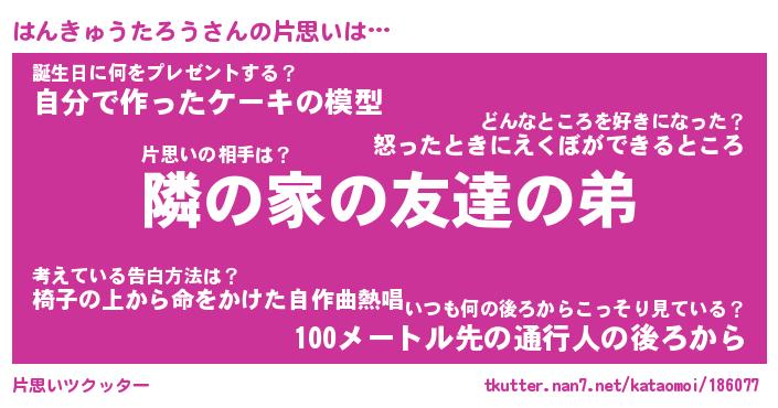 | 胡散臭い通販商品みたいなあだ名 | 『必ず成功する霊験あらたかなお札…その名も「はんきゅうたろう」』 |