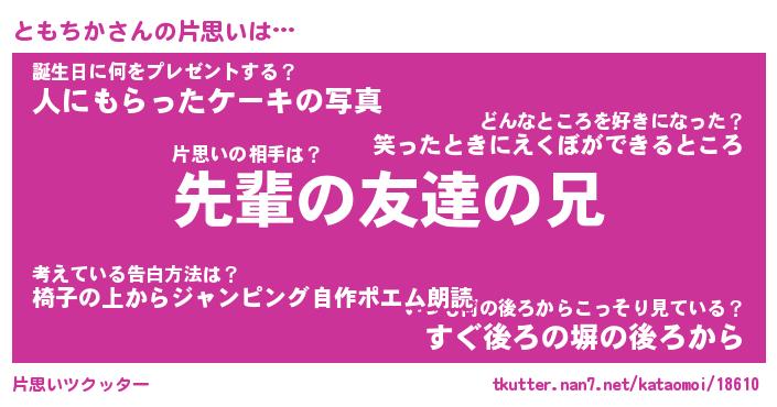 | ヘコむあだ名 | 『ともっふぃ~』『牛乳』『ともお』 |