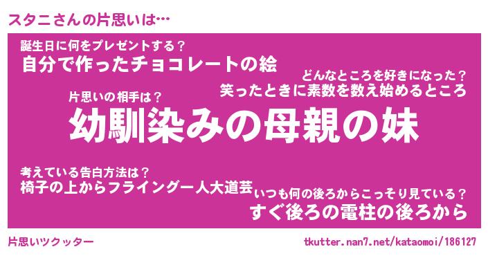 | 意味不明あだ名 | 『ペロリンスタニ』『スタニフォーエバー』 |