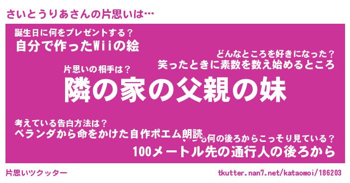 | 胡散臭い通販商品みたいなあだ名 | 『モテモテ間違いなし水晶球…その名も「さいとうりあ」』 |