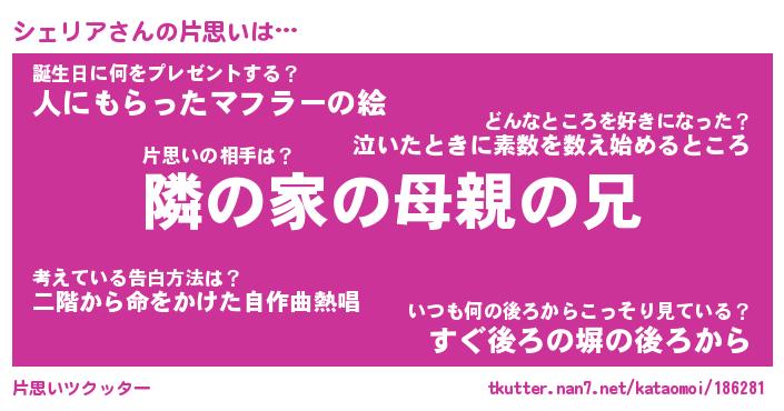| 胡散臭い通販商品みたいなあだ名 | 『必ず成功するブレスレット…その名も「シェリア」』 |