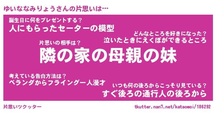 | ヘコむあだ名 | 『ゆいにー』『つくし』『ゆいぷりん』 |