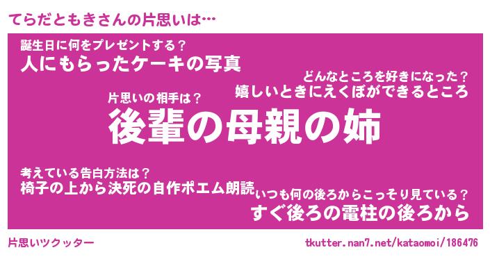 | 肩書あだ名 | 『てらだともき社長』『てらだともき教頭』 |