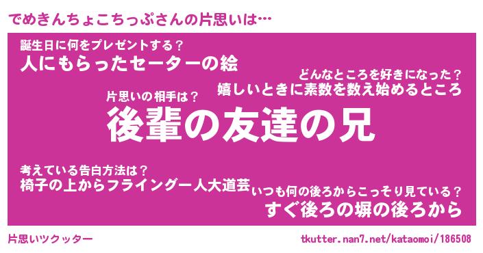 | ツイッター | でめきんちょこちっぷさんのツイッターID『dendenmushi_nyan』 |