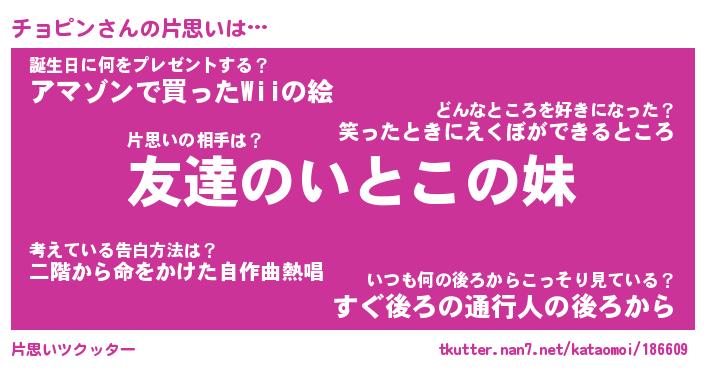 | 意味不明あだ名 | 『ペロリンチョピン』『永久保存チョピン』 |