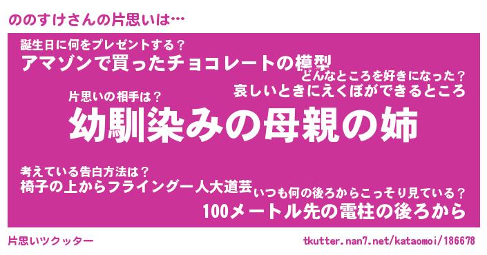 | 意味不明あだ名 | 『ペロリンののすけ』『永久保存ののすけ』 |