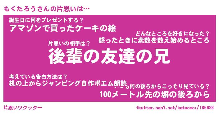 | ヘコむあだ名 | 『もくもー』『なまこ酢』『もくっぺ』 |