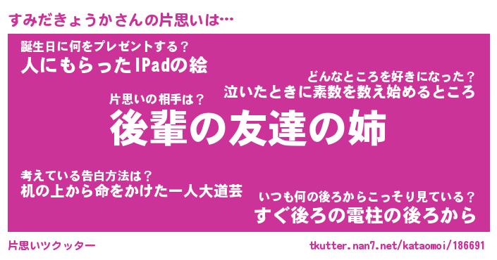 | 伝説のあだ名 | 『封印されしスナイパーすみだきょうか』 |