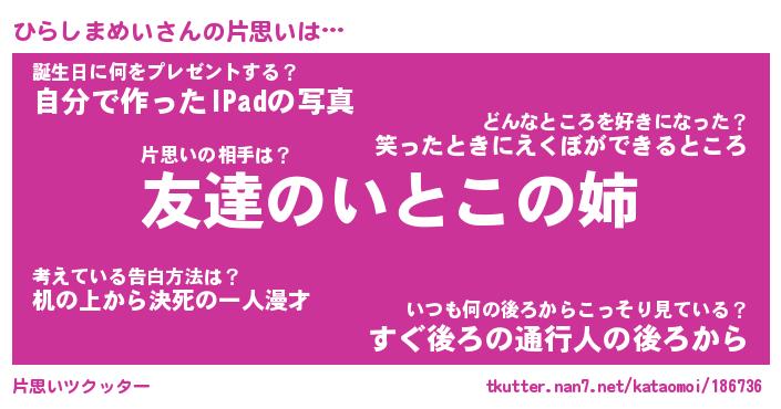 | 胡散臭い通販商品みたいなあだ名 | 『億万長者になれる水晶球…その名も「ひらしまめい」』 |