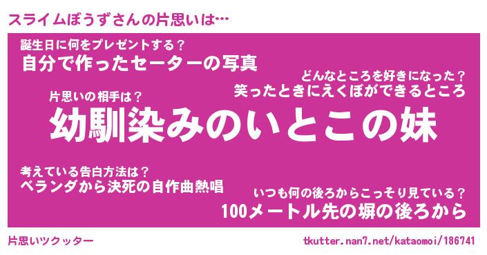 | 意味不明あだ名 | 『ペロリンスライムぼうず』 |