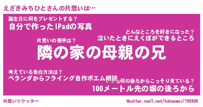 | 胡散臭い通販商品みたいなあだ名 | 『必ず成功するブレスレット…その名も「えざきみちひと」』 |