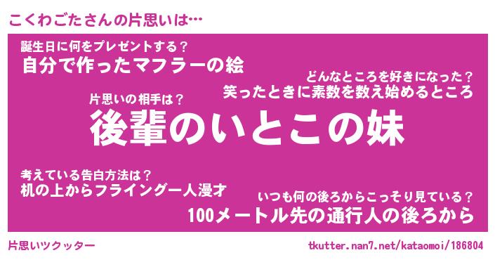 | ファンタジー風あだ名 | 『コクフェル』『エターナルコクワゴター』 |