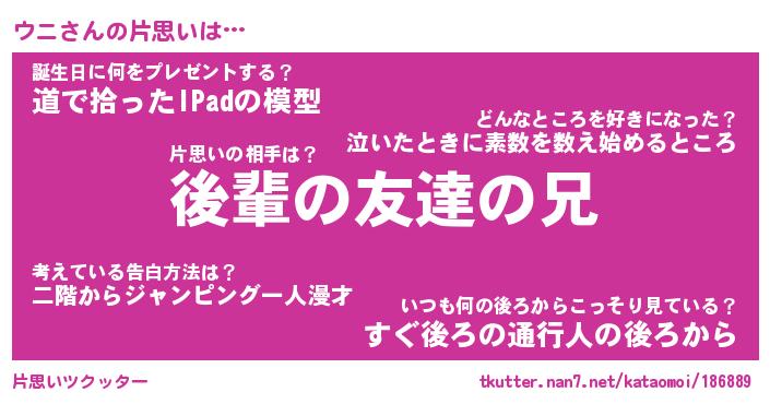 | ヘコむあだ名 | 『ウニもー』『牛乳』『ウニっぺ』 |