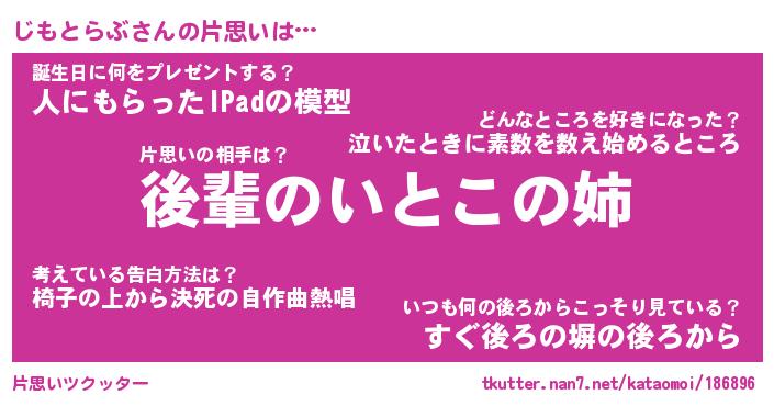 | ツイッター | じもとらぶさんのツイッターID『namakemono_kun』 |