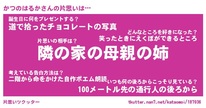 | 胡散臭い通販商品みたいなあだ名 | 『モテモテ間違いなしブレスレット…その名も「かつのはるか」』 |