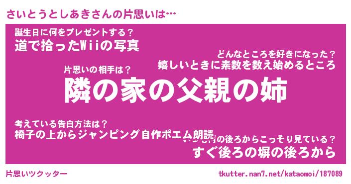 | 意味不明あだ名 | 『ペロリンさいとうとしあき』 |