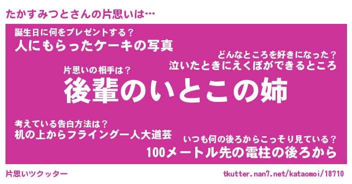 | ヒーロー風カッコイイあだ名 | 『スーパータカスミツト』『魔戒騎士タカ』 |