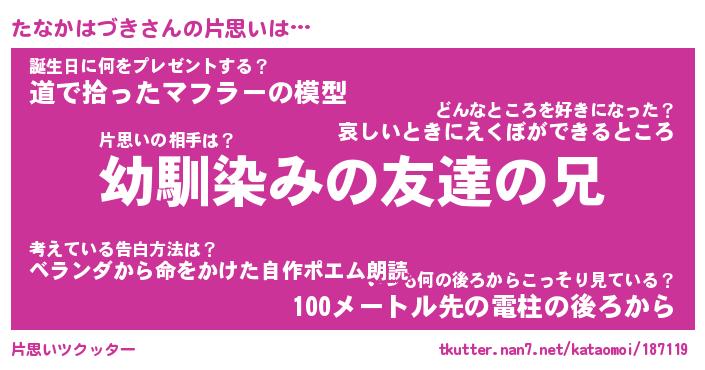 | ヘコむあだ名 | 『たなもー』『豆乳』『たなお』 |