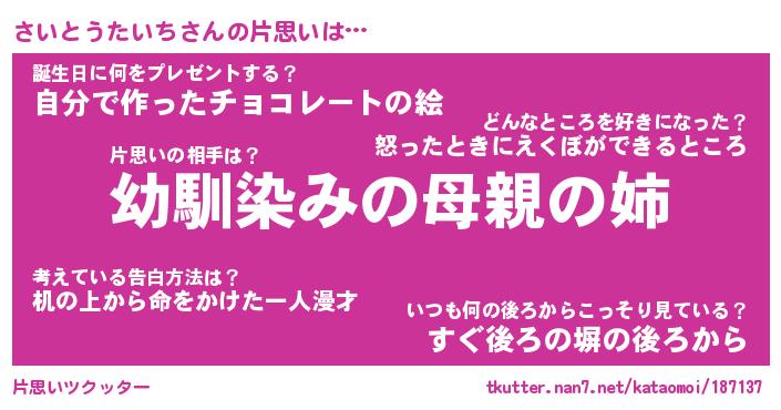 | 恥ずかしいあだ名 | 『プリティーさいとうたいち』『さいちん』 |