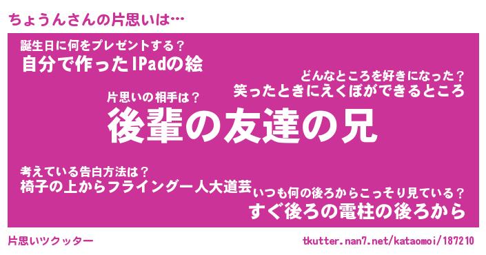 | ヘコむあだ名 | 『ちょっふぃ~』『つくし』 |