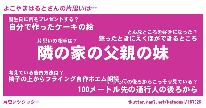 | 胡散臭い通販商品みたいなあだ名 | 『必ず成功するブレスレット…その名も「よこやまはると」』 |