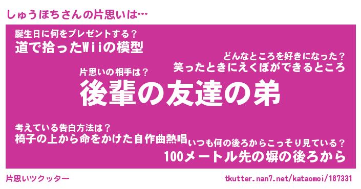 | ヘコむあだ名 | 『しゅっふぃ~』『つくし』 |