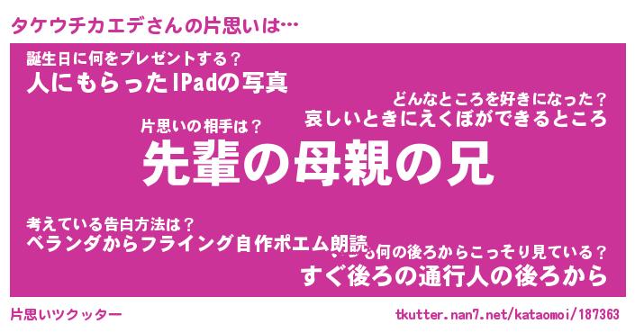 | ヘコむあだ名 | 『タケにー』『レバニラ』『タケっぺ』 |