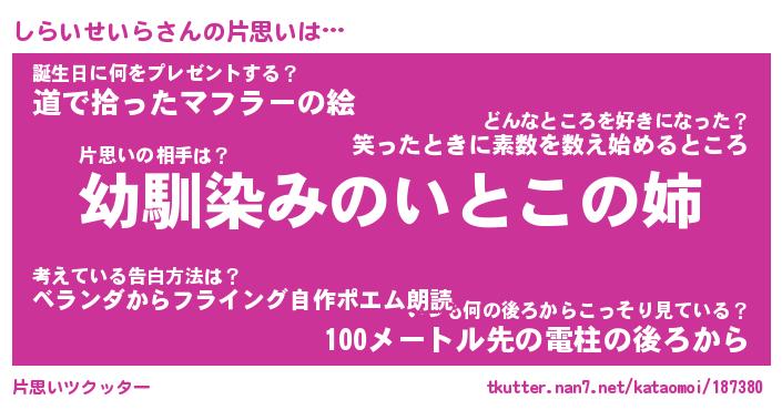 | 胡散臭い通販商品みたいなあだ名 | 『必ず成功する水晶球…その名も「しらいせいら」』 |