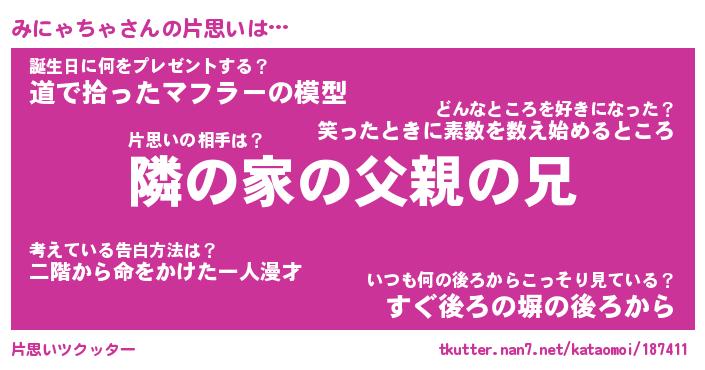 | 胡散臭い通販商品みたいなあだ名 | 『必ず成功する水晶球…その名も「みにゃちゃ」』 |