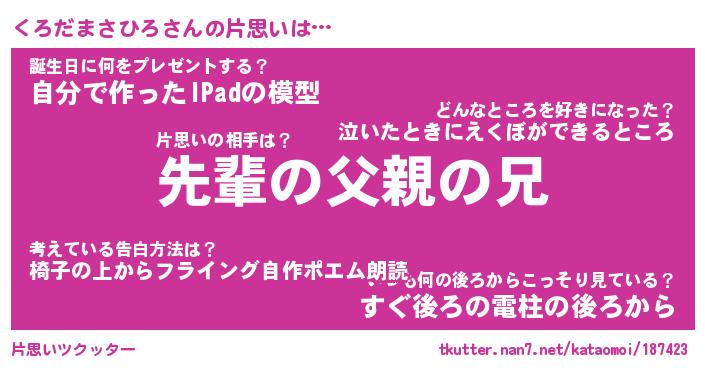 | 胡散臭い通販商品みたいなあだ名 | 『モテモテ間違いなし水晶球…その名も「くろだまさひろ」』 |