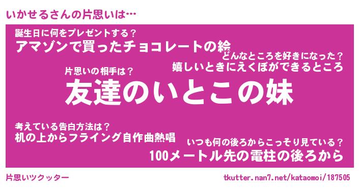 | 意味不明あだ名 | 『ペロリンいかせる』『永久保存いかせる』 |