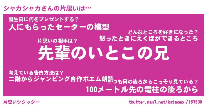 | ヘコむあだ名 | 『シャにゅー』『豆乳』『シャっ子』 |