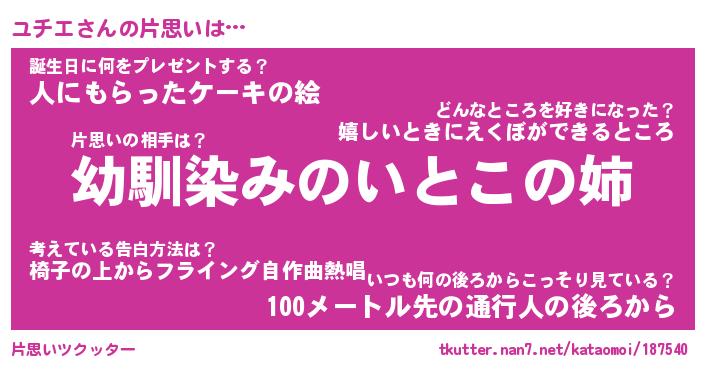 | 2回繰り返すあだ名 | 『ユチユチ』『ユユチチ』『ねばねば』 |