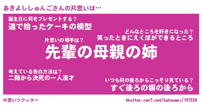 | ヘコむあだ名 | 『あきにー』『豆乳』『あきっちょ』 |