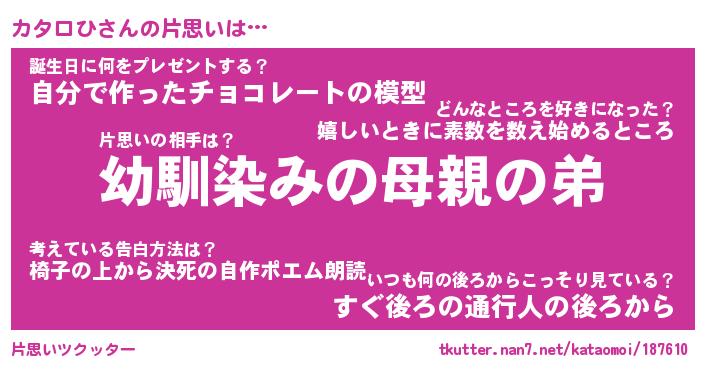 | 男性向けラノベタイトル風あだ名 | 『カタロひの憂鬱』 |