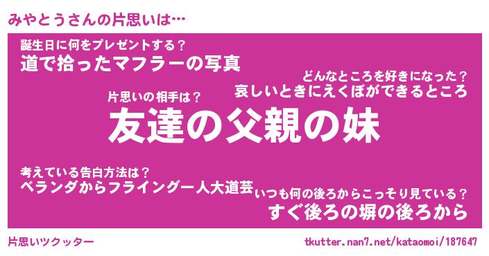 | ヘコむあだ名 | 『みやふぇ~』『豆乳』『みやお』 |
