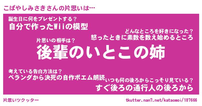 | ヘコむあだ名 | 『こばもー』『牛乳』『こばぷりん』 |