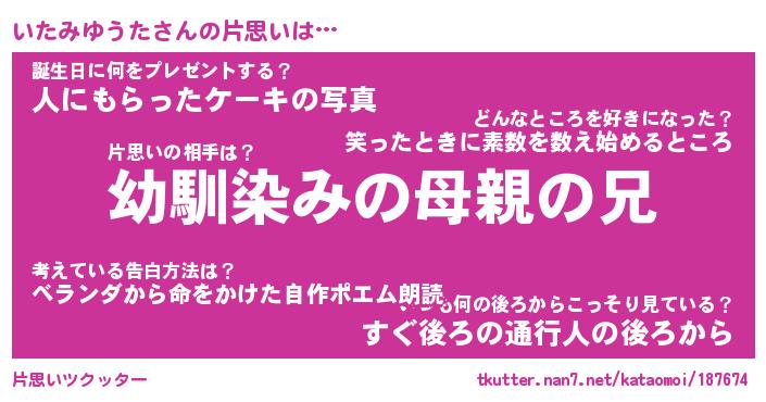 | ヒーロー風カッコイイあだ名 | 『スーパーイタミユウタ』『天弓騎士イタ』 |