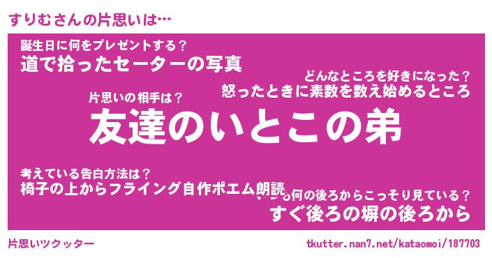 | ヘコむあだ名 | 『すりにゅー』『豆乳』『すりっぺ』 |