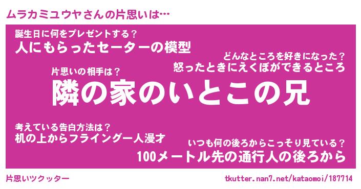 | 胡散臭い通販商品みたいなあだ名 | 『モテモテ間違いなし水晶球…その名も「ムラカミユウヤ」』 |