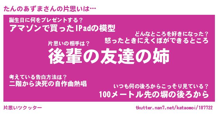 | 意味不明あだ名 | 『ペロリンたんのあずま』 |