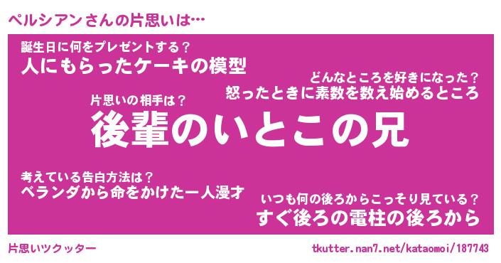 | ファンタジー風あだ名 | 『ペルフェル』『エターナルペルシアンー』 |