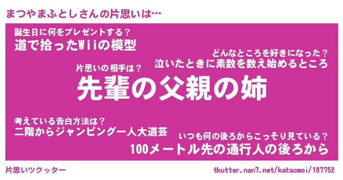 | 胡散臭い通販商品みたいなあだ名 | 『モテモテ間違いなしブレスレット…その名も「まつやまふとし」』 |