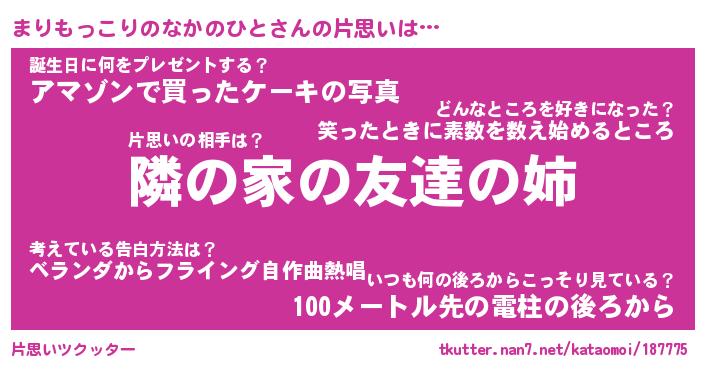 | 胡散臭い通販商品みたいなあだ名 | 『必ず成功する霊験あらたかなお札…その名も「まりもっこりのなかのひと」』 |