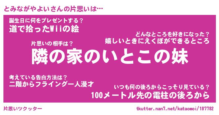 | ヘコむあだ名 | 『とみもー』『牛乳』『とみっ子』 |