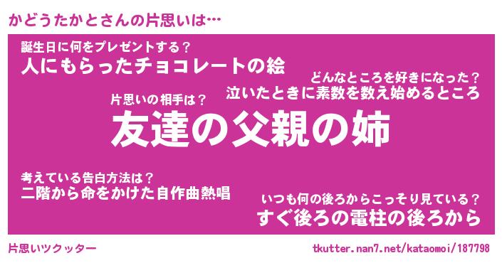 | ヘコむあだ名 | 『かどふぇ~』『なまこ酢』 |