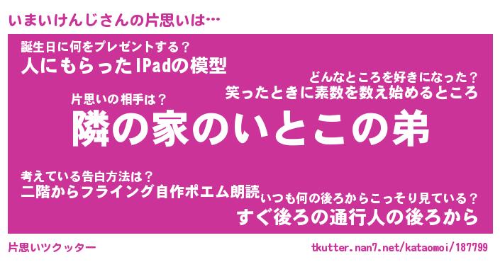 | ヒーロー風カッコイイあだ名 | 『スーパーイマイケンジ』『天弓騎士イマ』 |