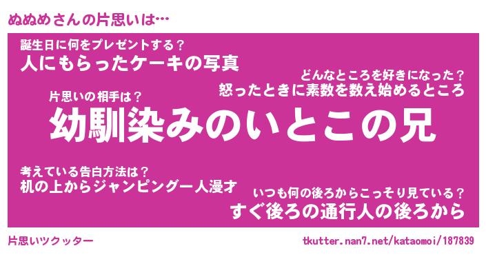 | ファンタジー風あだ名 | 『ヌヌフェル』『エターナルヌヌメー』 |