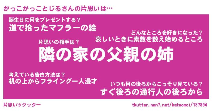 男性向けラノベタイトル風あだ名 | 『かっこかっことじるの憂鬱』 |